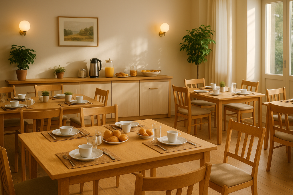 Nella sala colazione, nella reception o nel corridoio, la luce diventa uno strumento di orientamento e socialità.